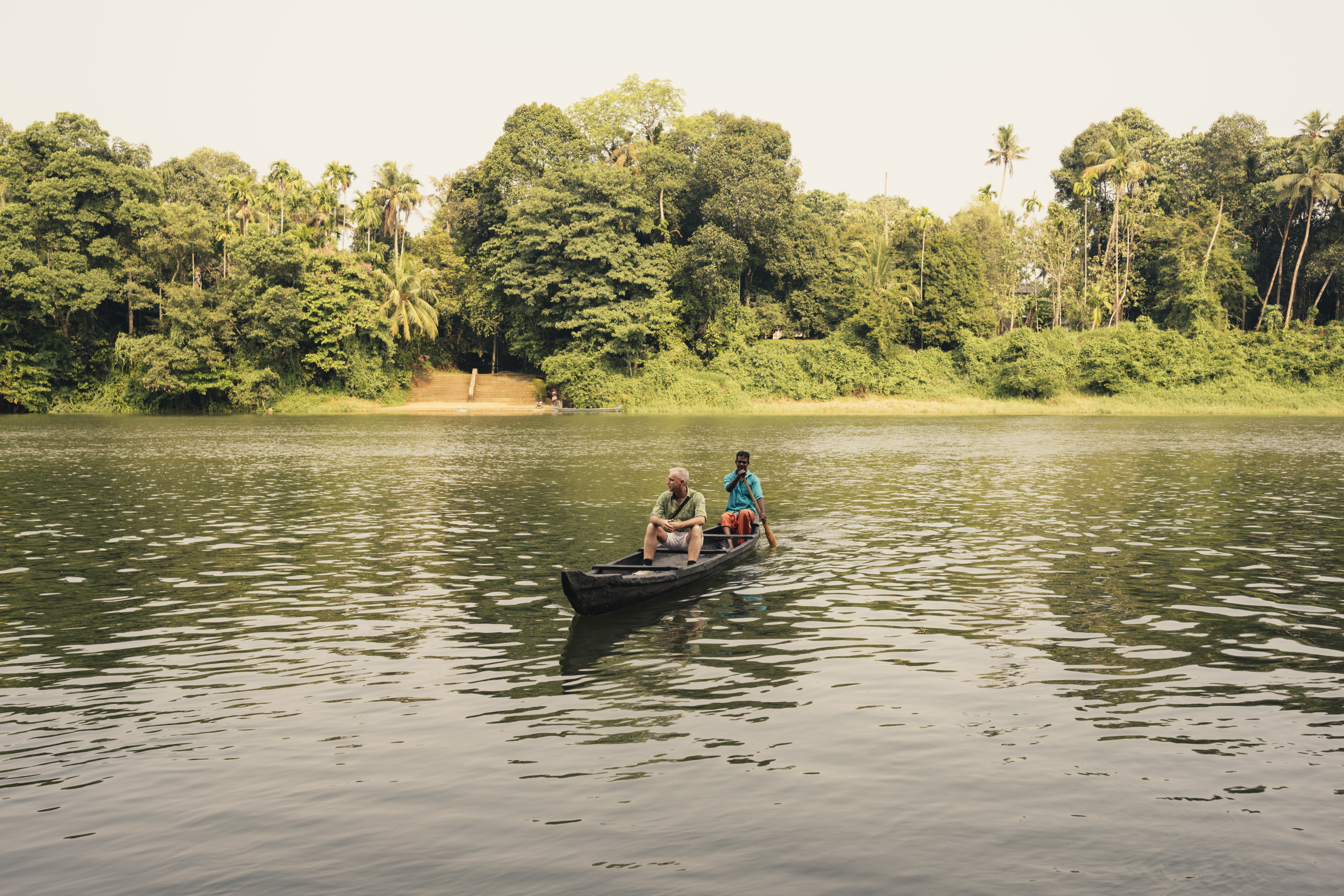 Early this morning, drive to meet artisanal toddy tapper and observe the age-old method of palm toddy extraction from earthen pots. Enjoy a fresh tasting before returning for breakfast. In the afternoon, embark on a romantic canoe crossing over the Muvattupuzha River. Continue with a leisurely walk-through rubber and tapioca fields to reach a charming family-run tea house. Relish local favourites such as tea, banana fritters, tapioca chips, and parippu vada while sharing stories with local traders. Your day concludes with a private chef-curated dinner in the courtyard. Overnight stay in Muvattupuzha.