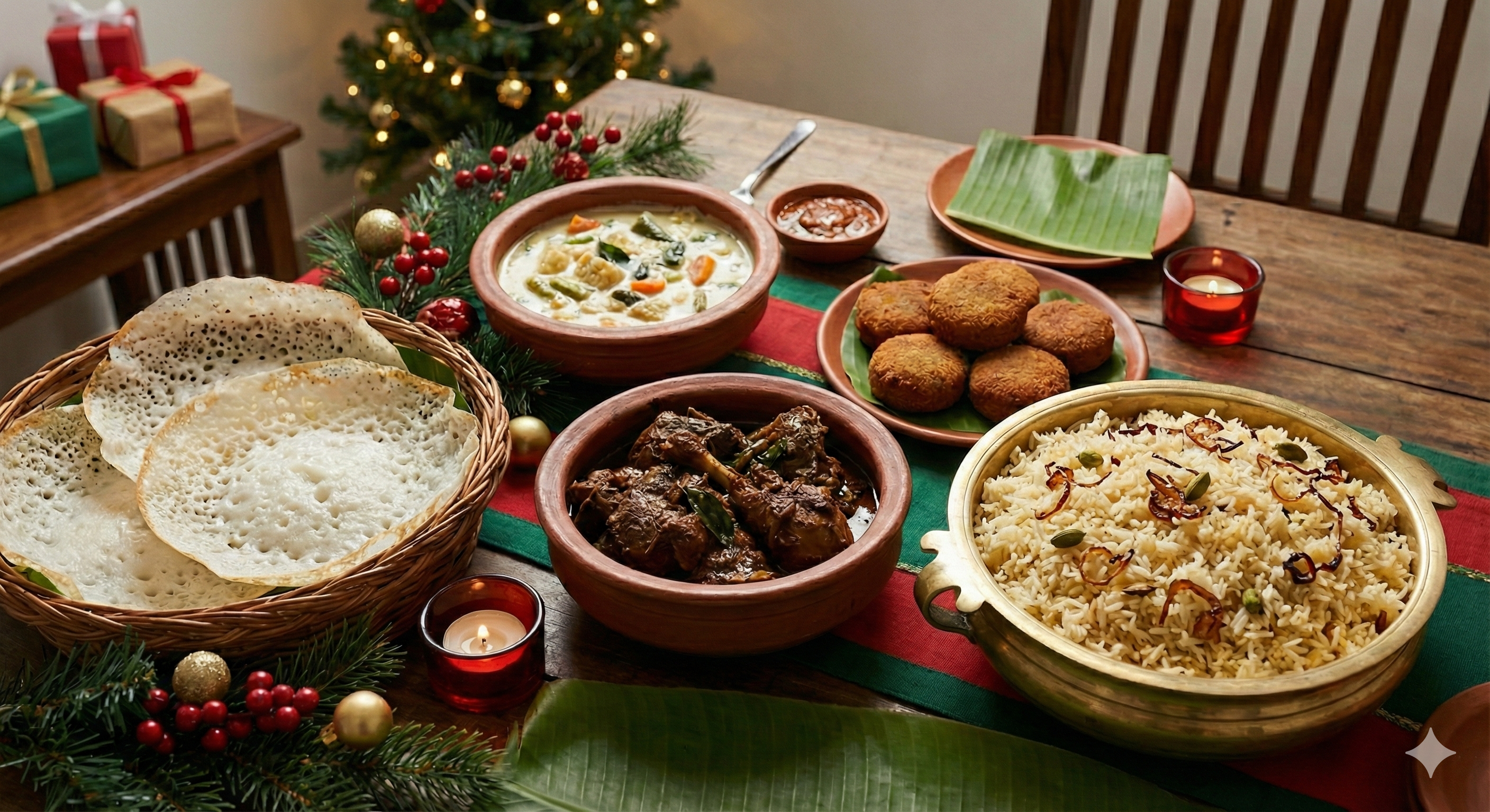 In the lush landscapes of Kerala, Christmas feasts are deeply spiritual and exquisitely spiced. After the dawn service, families gather for a meal that’s as soulful as it is sumptuous appams with stew, duck roast, mutton cutlets, and rice flavoured with ghee and cardamom. Each dish reflects the Syrian Christian heritage of the region, where faith and food intertwine beautifully. In Tamil Nadu, homes glow with festive sweets like kul kuls and rose cookies, while rich plum cakes, soaked in rum and studded with dry fruits, make their grand appearance.